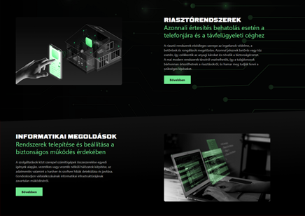 I designed a security technology website where green creates a "nightvision" effect, fitting for a company focused on cameras. Beyond normal scroll effects, a slideshow was added at the top, combined and animated with a video loop.